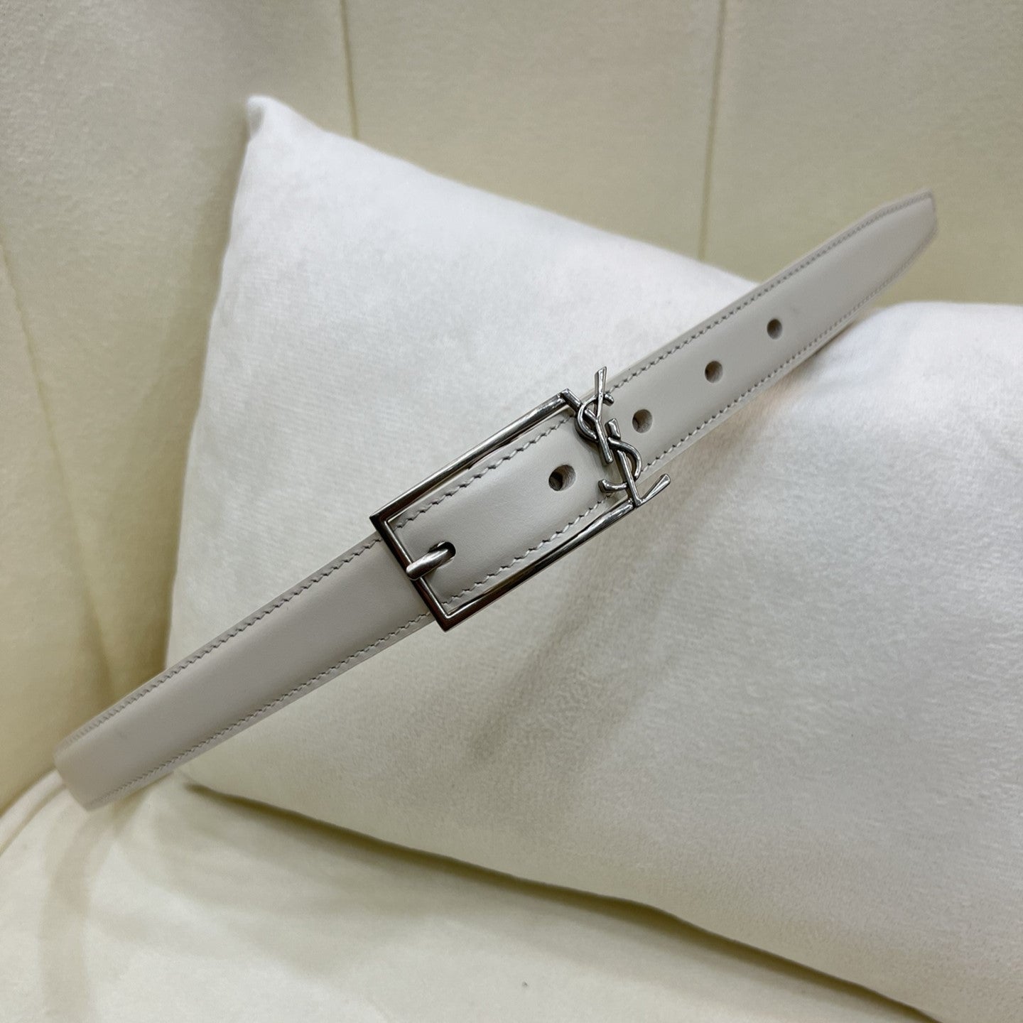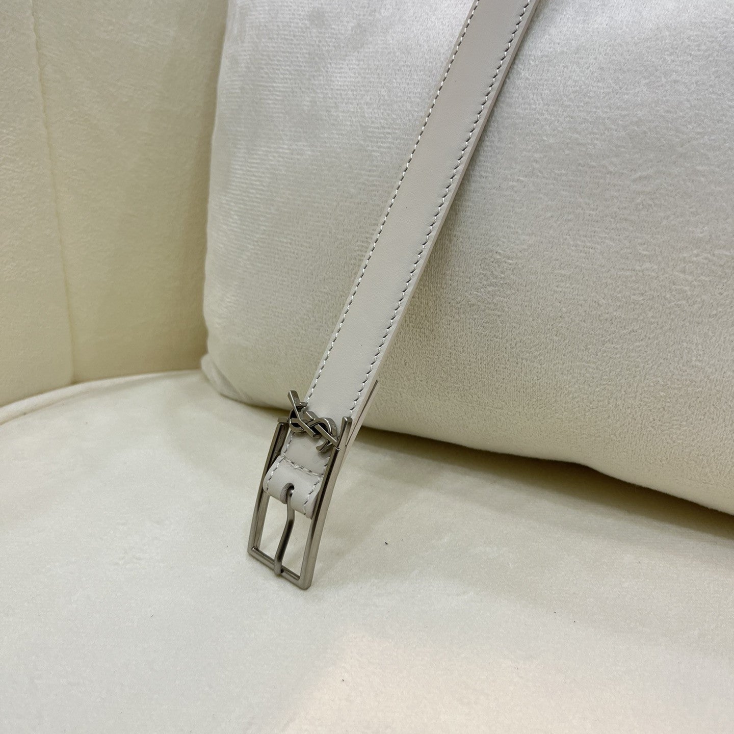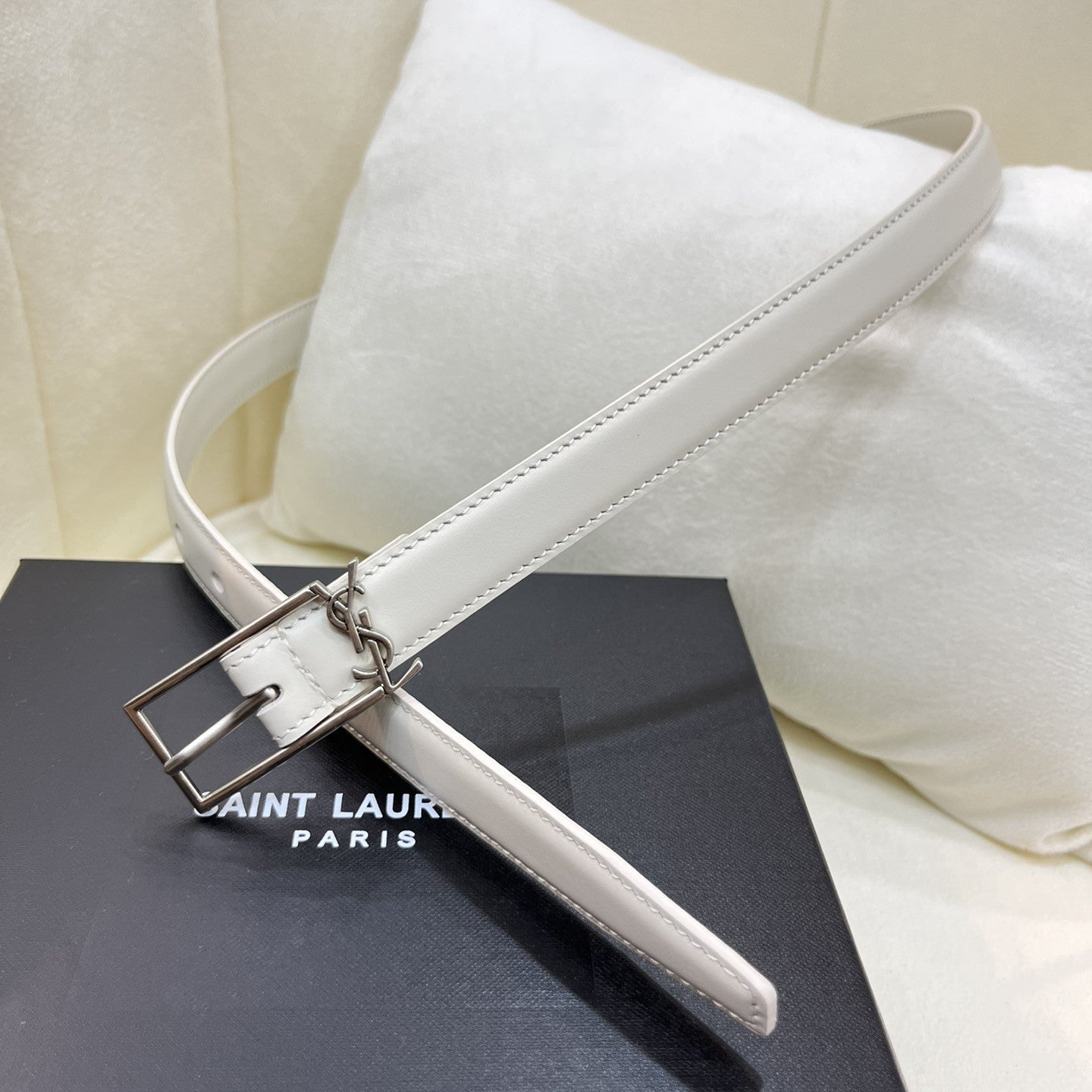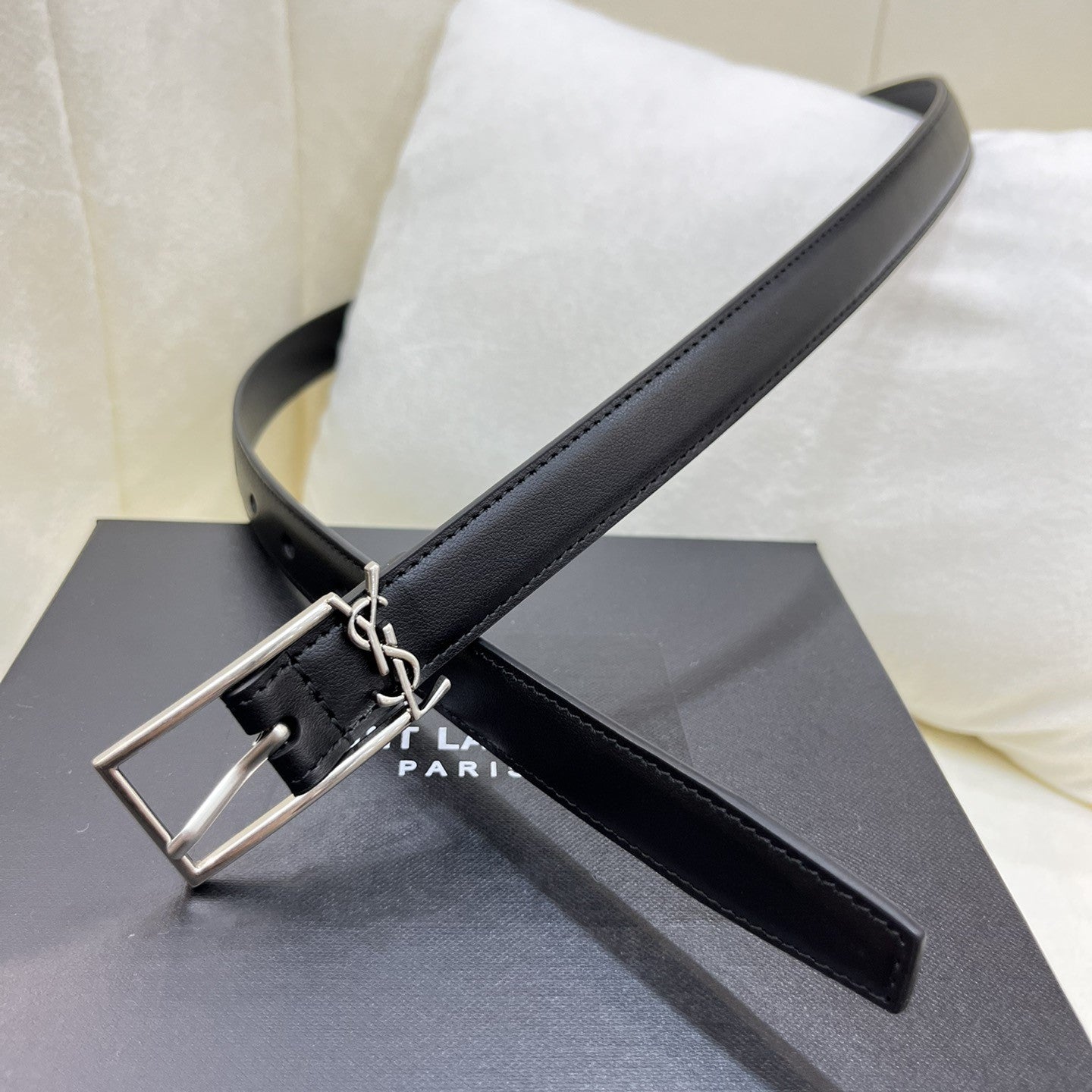 Detalhe logo sаіnt lаurеnt cassandre na fivela.