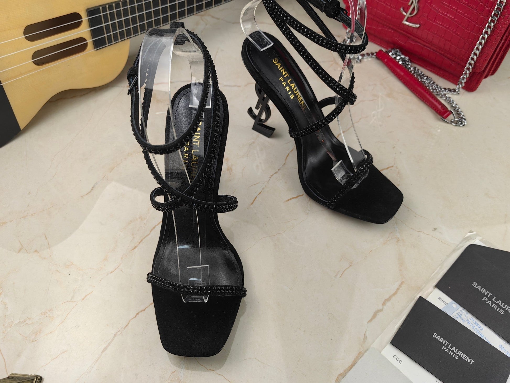 Sandália Modelo Saint Laurent Opyum com salto 110mm;